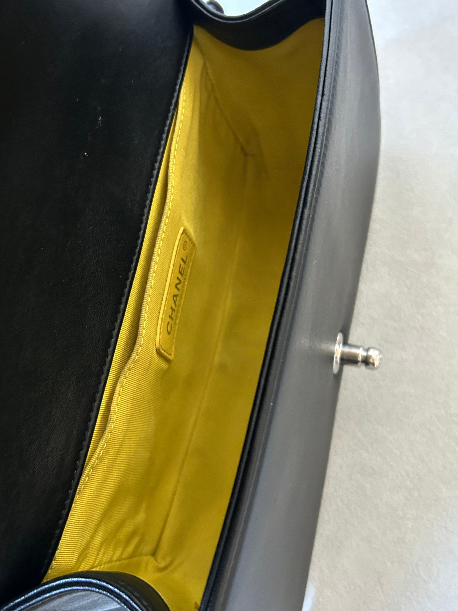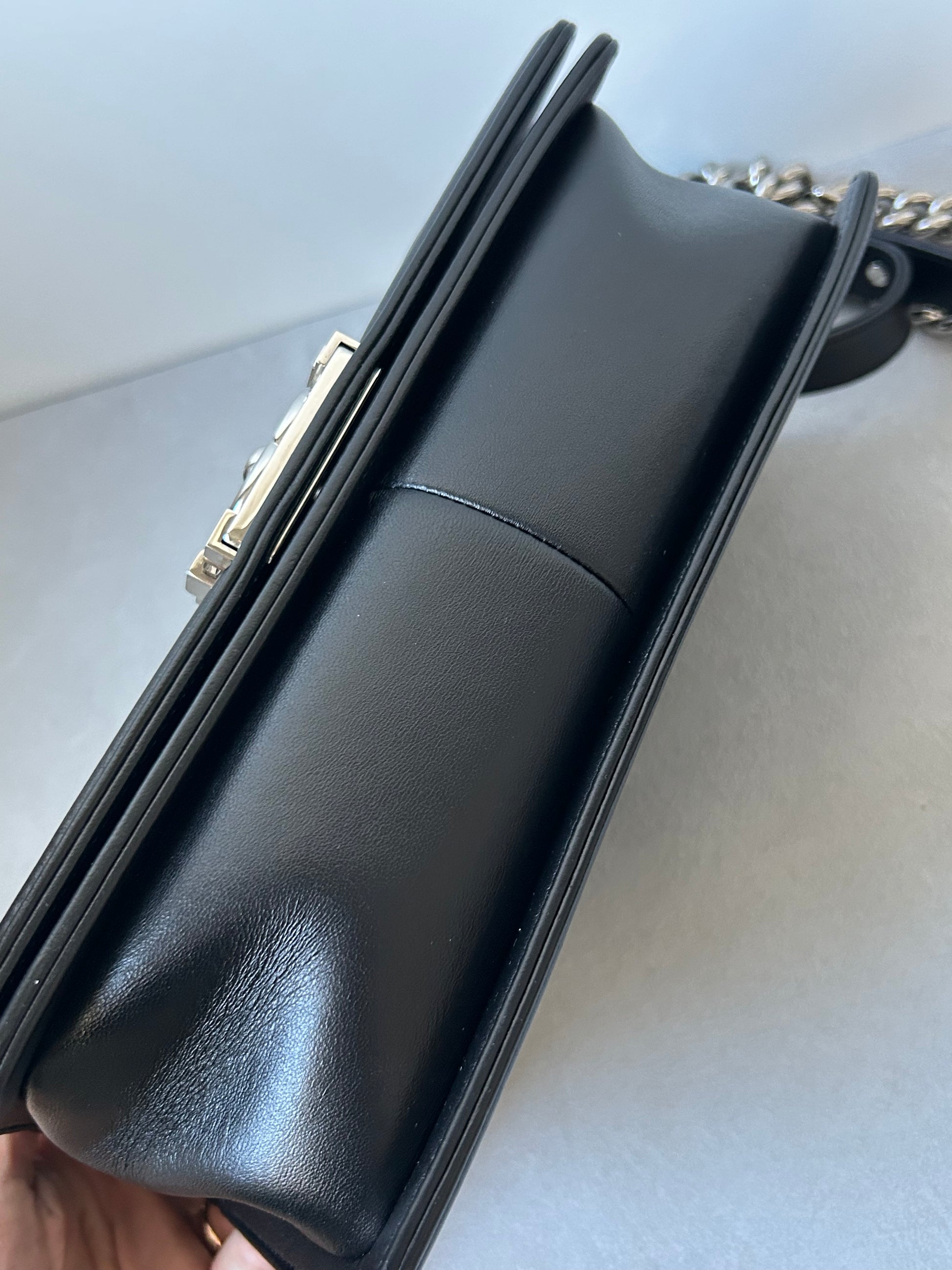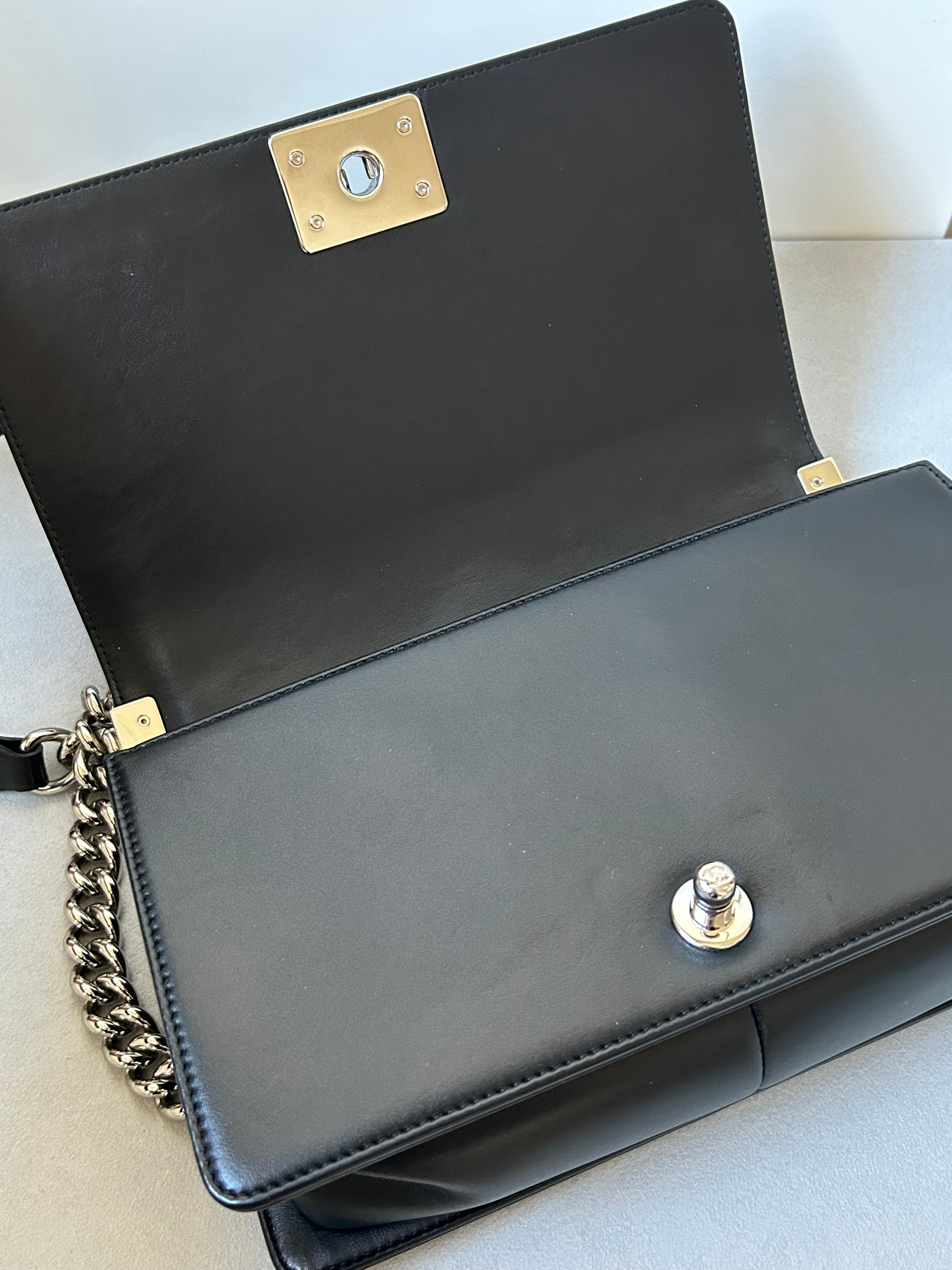 This Chanel le boy boasts a timeless combination of black leather and tweed. With its medium size, it's the perfect balance of practicality and luxury. A preloved piece, it offers a sustainable option for fashion-forward individuals. Experience the iconic and elegant style of Chanel with this beautiful addition to your collection.