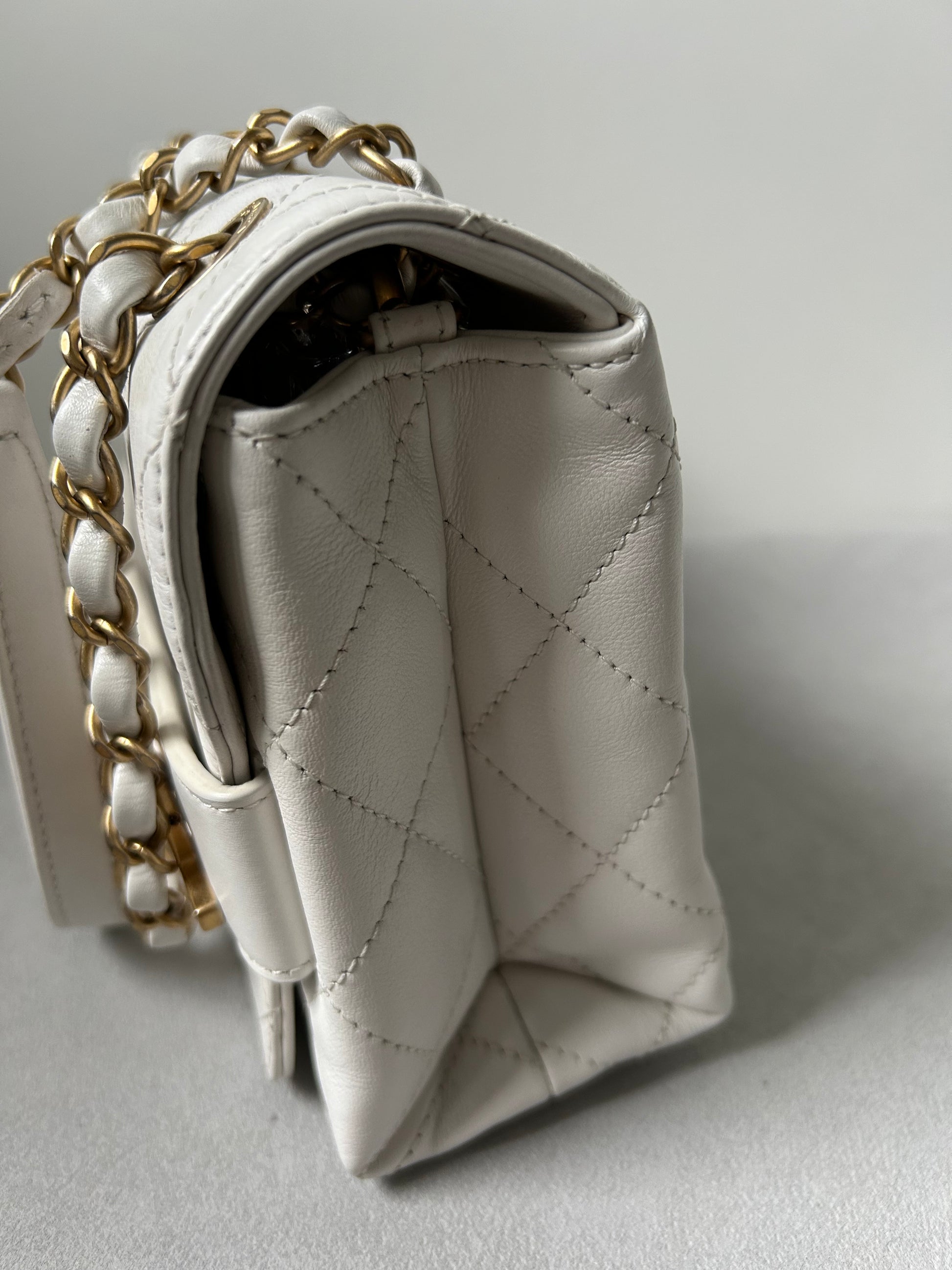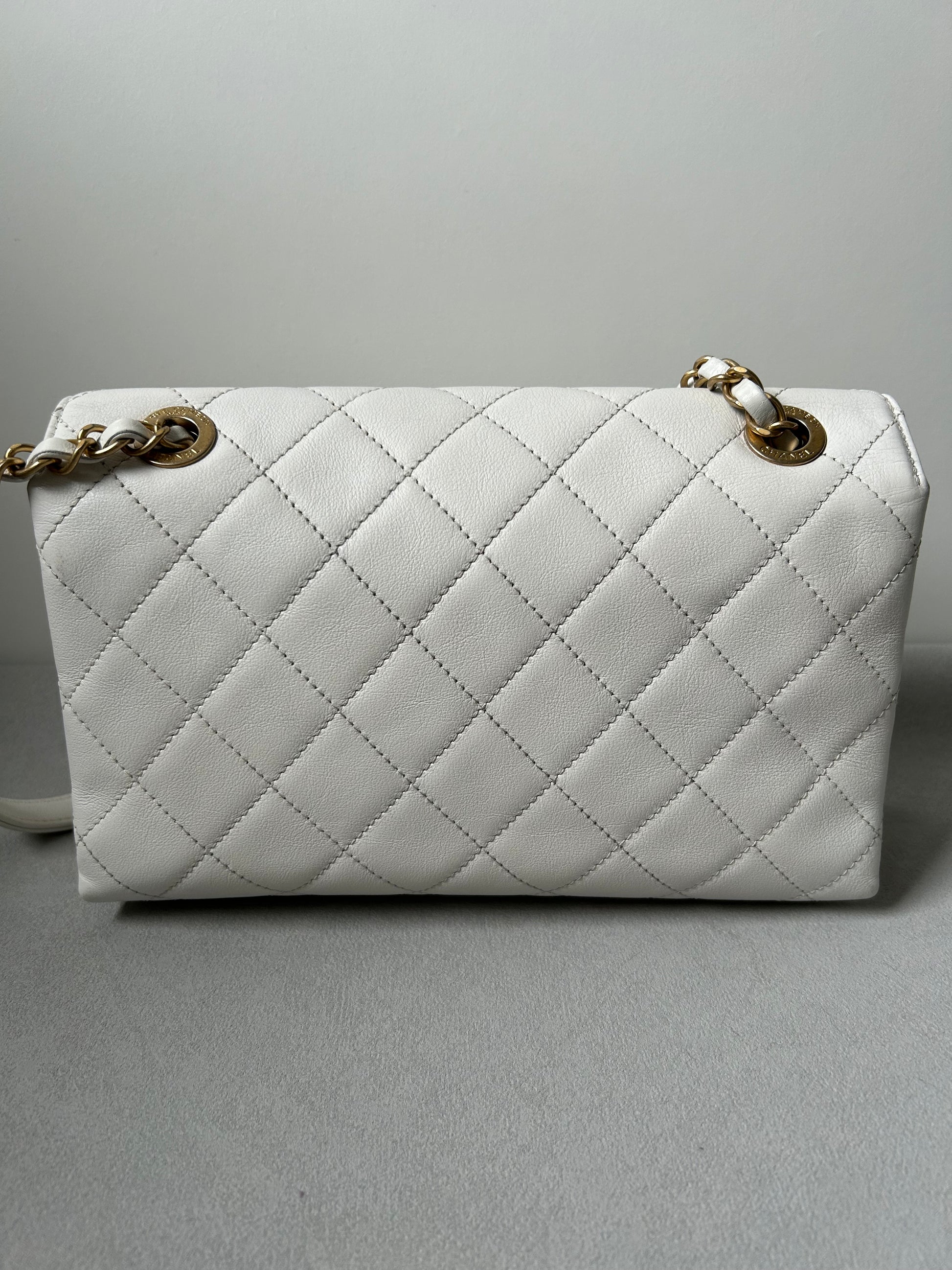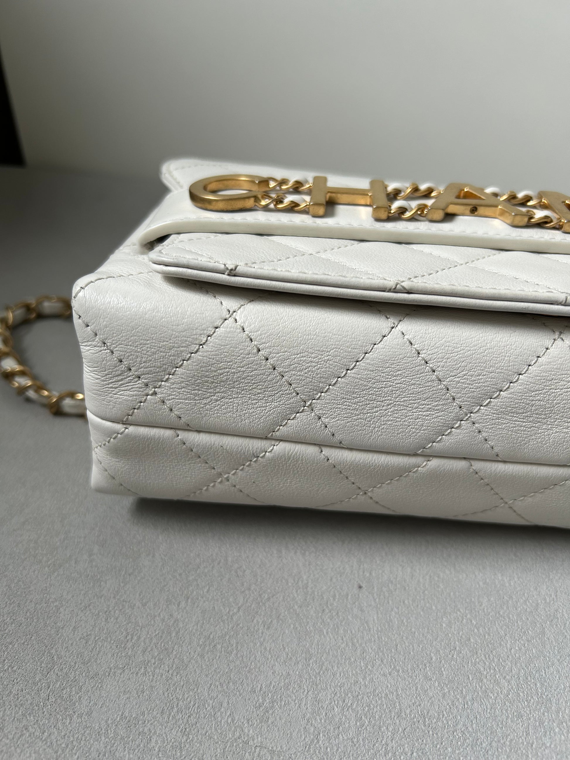 Chanel logo enchained flap bag quilted lambskin