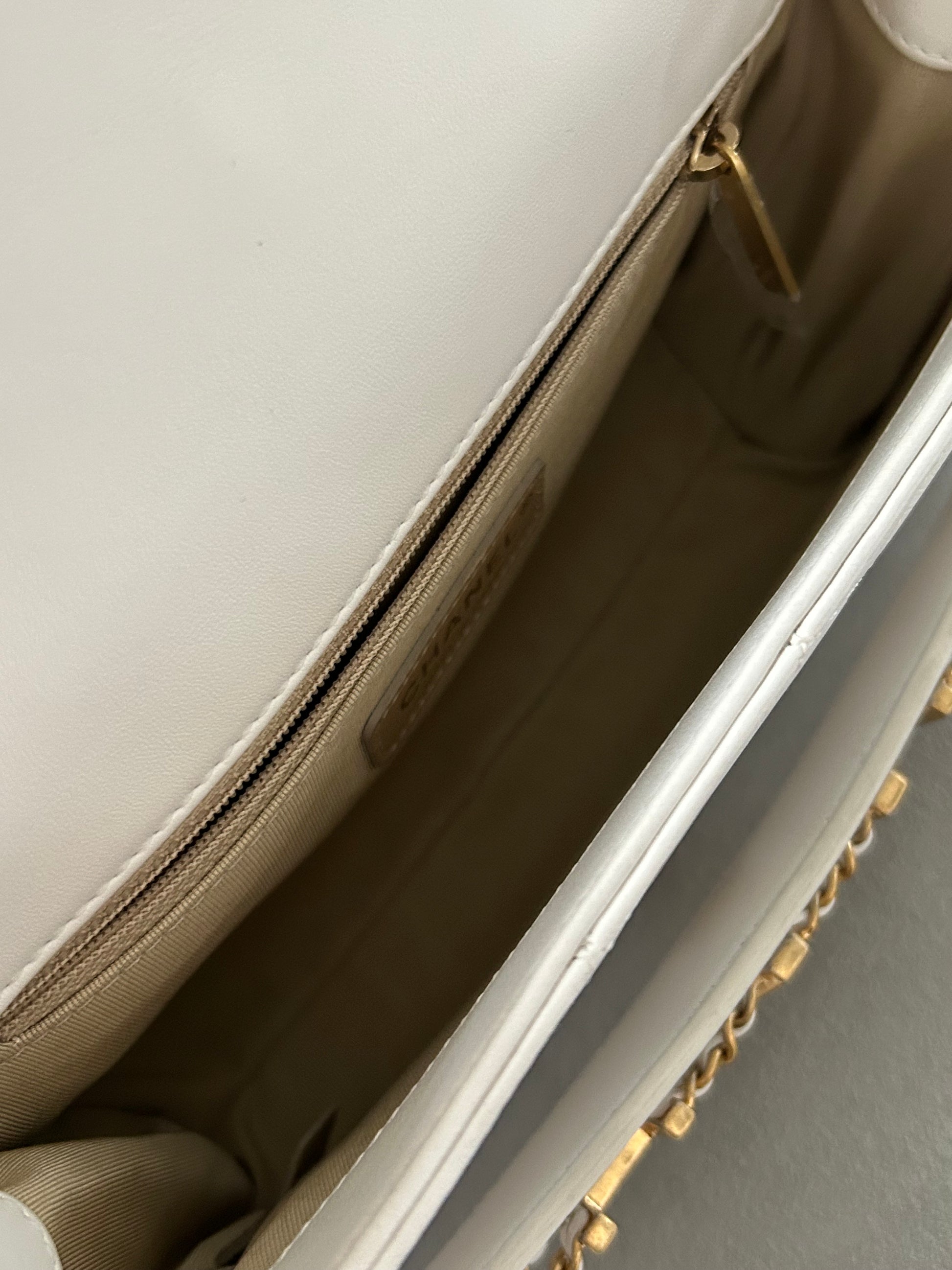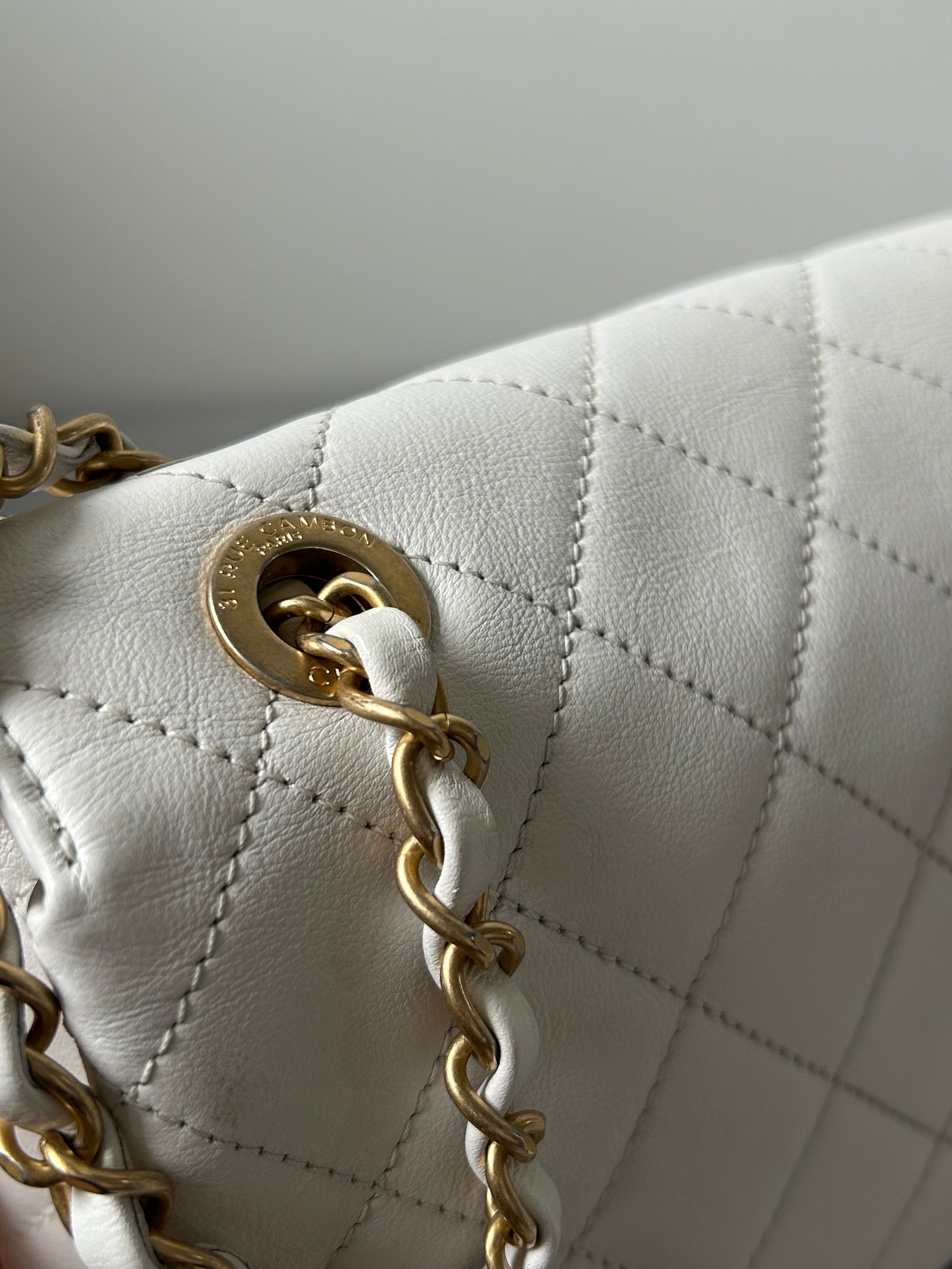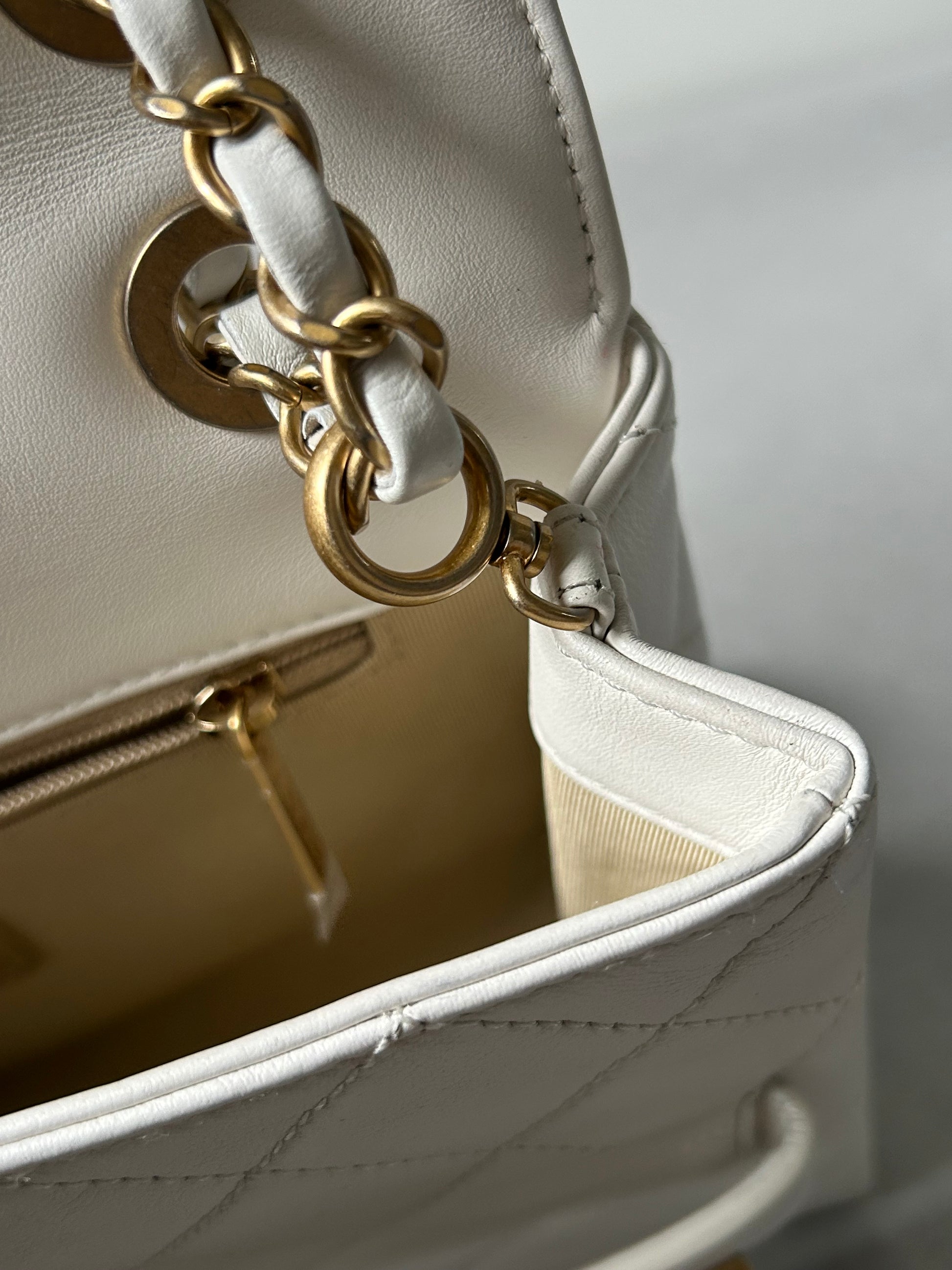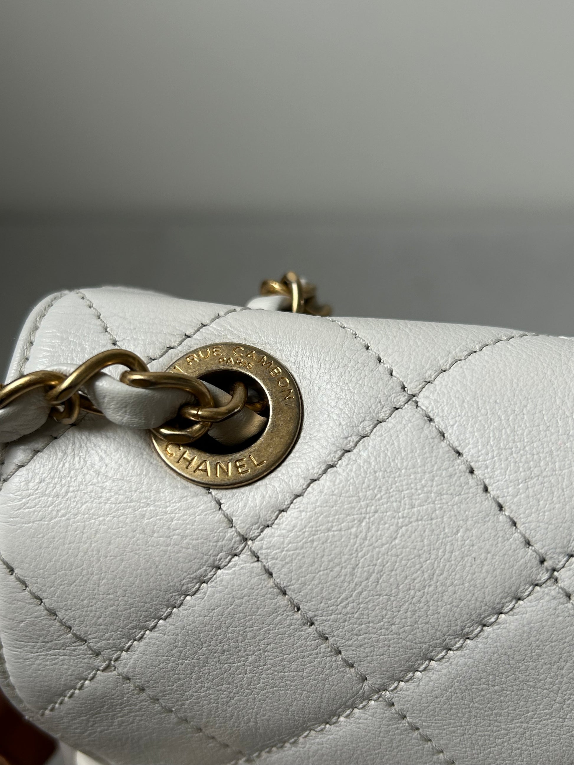 Chanel logo enchained flap bag quilted lambskin
