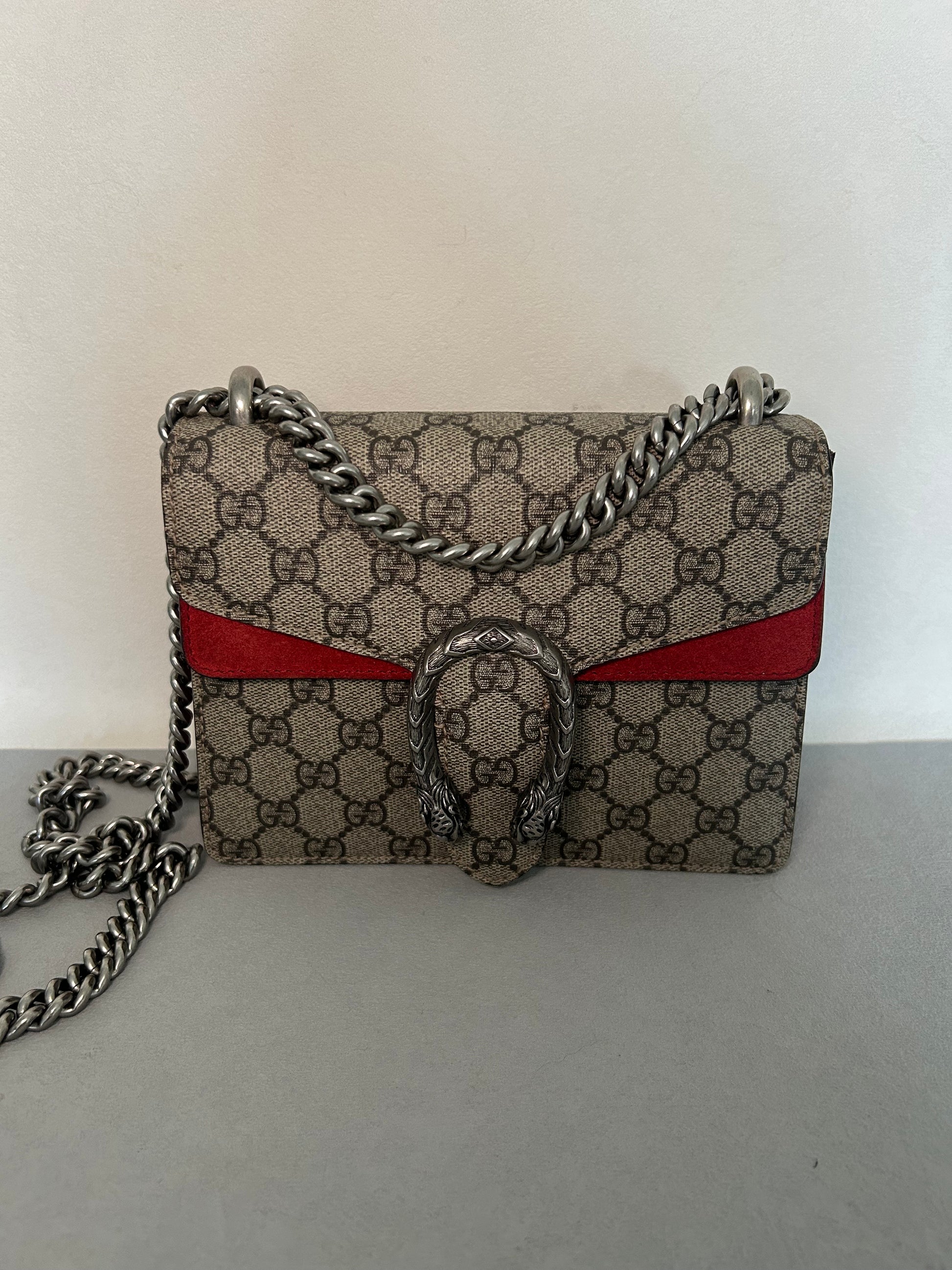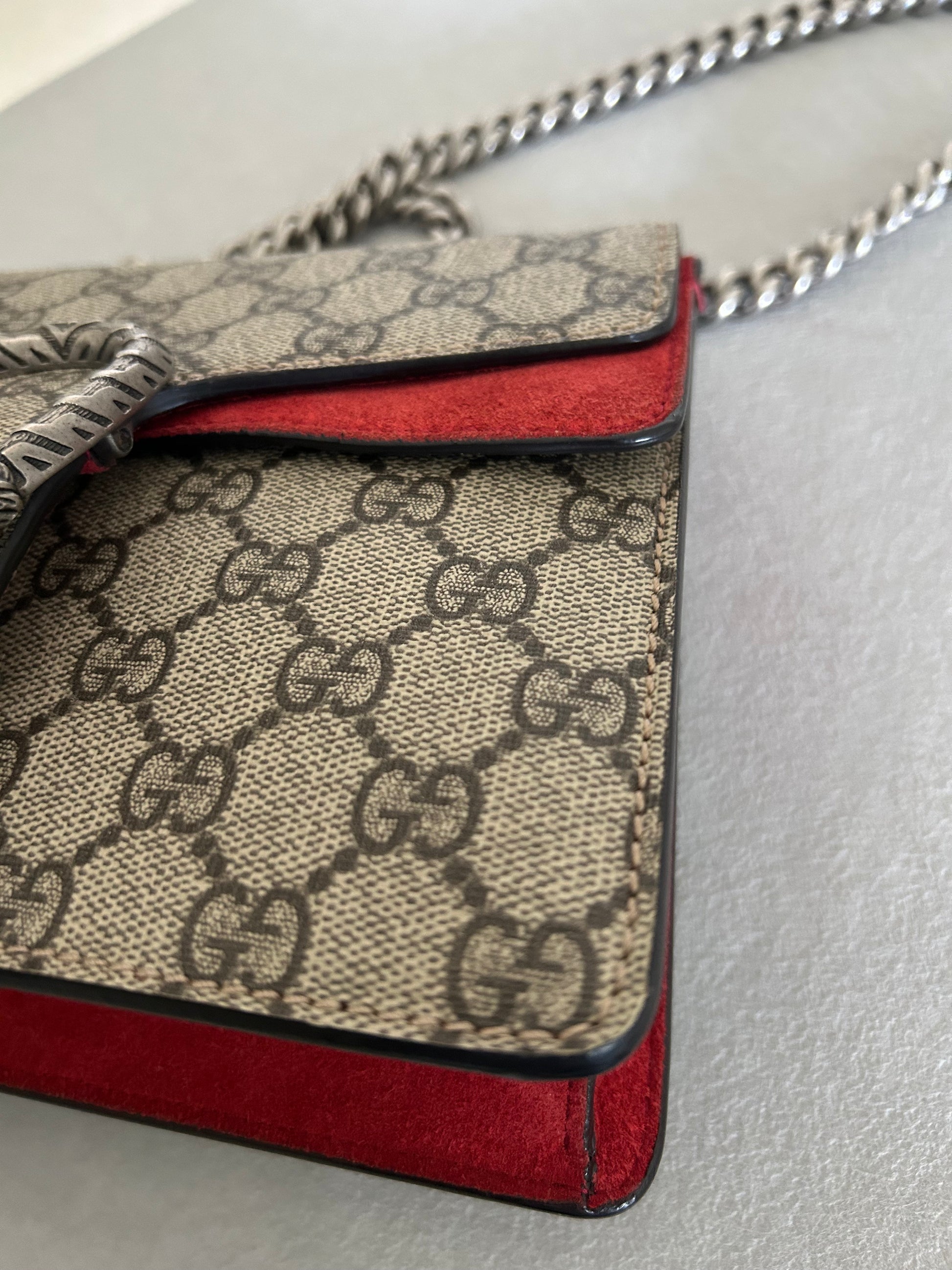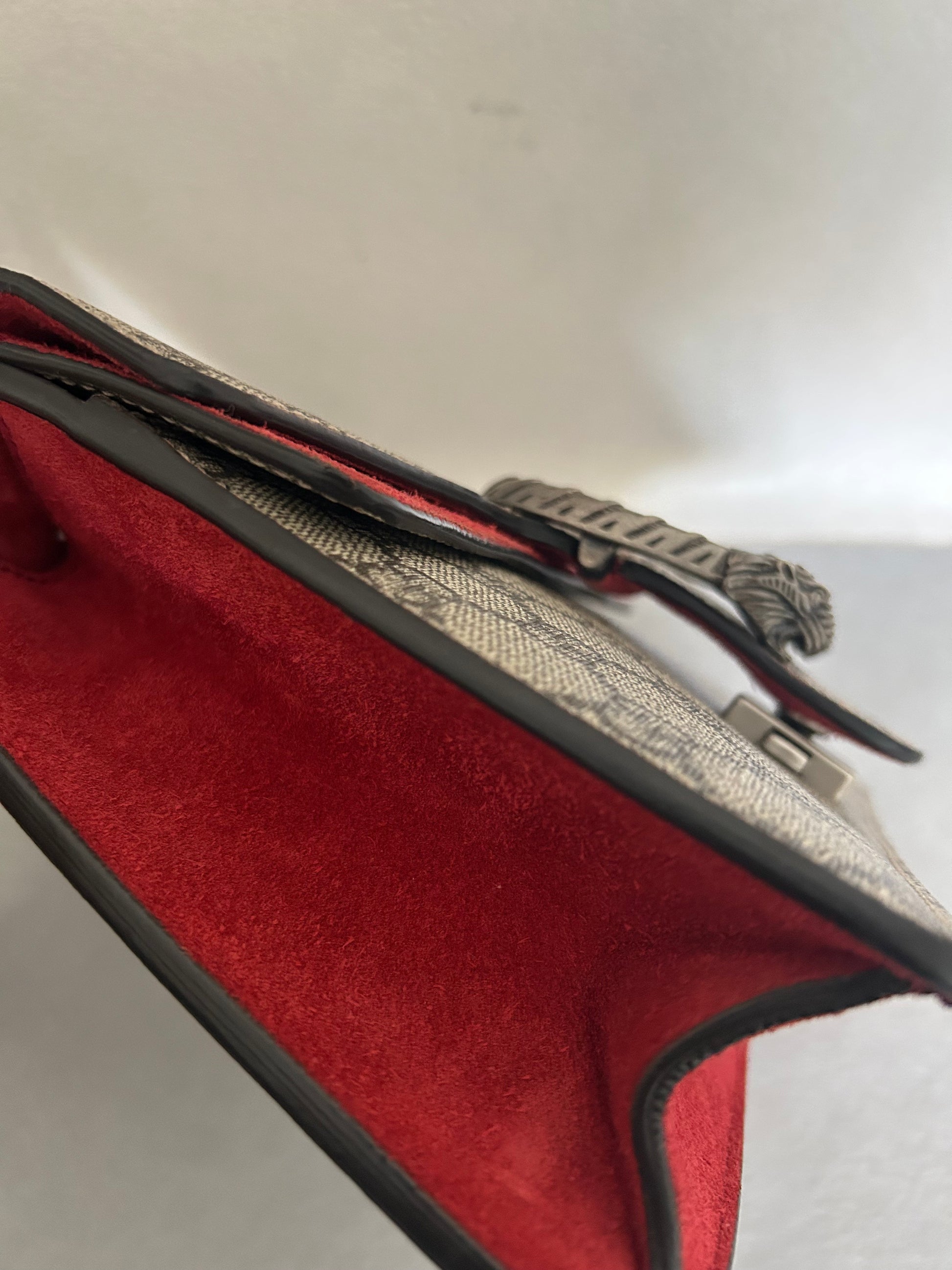 The Gucci Dionysus mini shoulder bag is a refined accessory that showcases expert Italian craftsmanship. Crafted from premium materials, it features the distinctive tiger head closure inspired by Greek mythology, adding a unique touch of heritage. Its compact design is both stylish and functional. Can be used as shoulder bag or crossbody bag.
