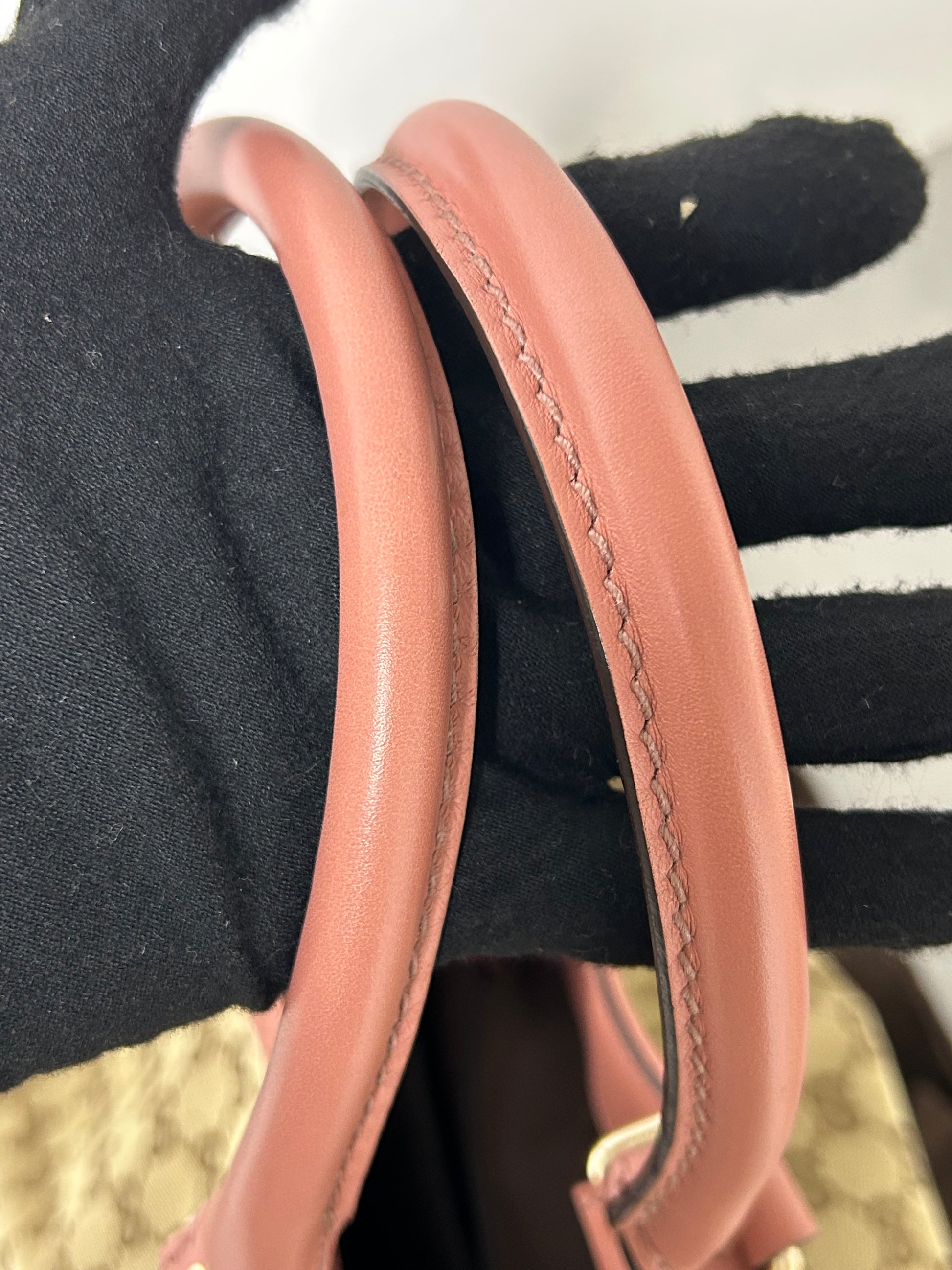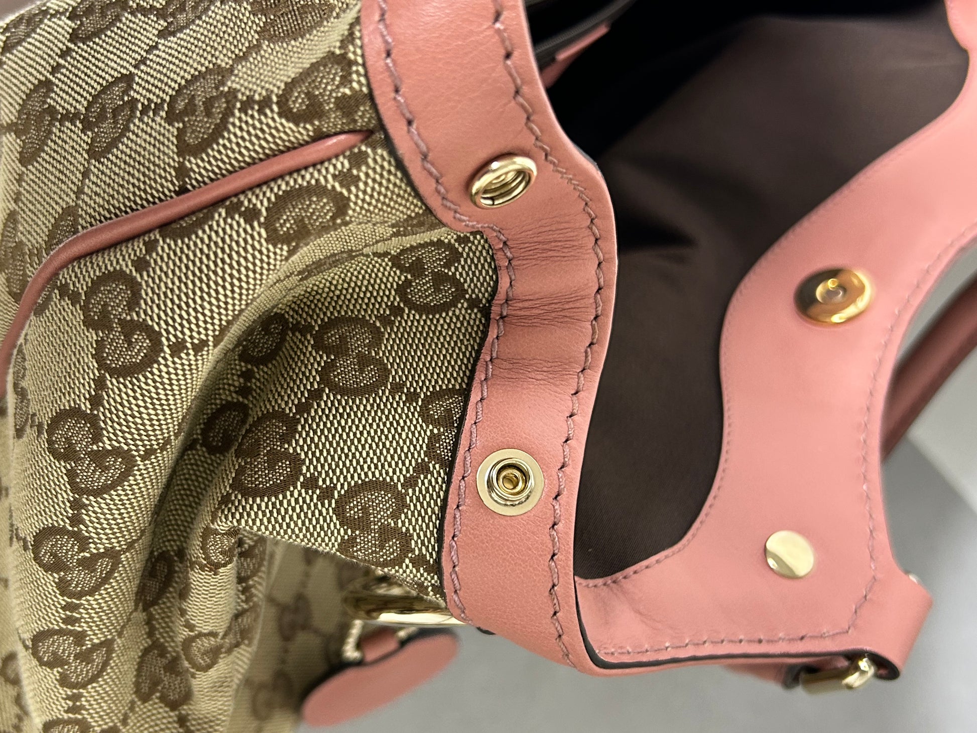 Gucci sukey tote bag in beige GG canvas with pink leather trim